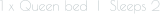1 Queen bed, Sleeps 2 1 Queen bed, Sleeps 2 1 Queen bed, Sleeps 2 1 Queen bed, Sleeps 2 1 Queen bed, Sleeps 2